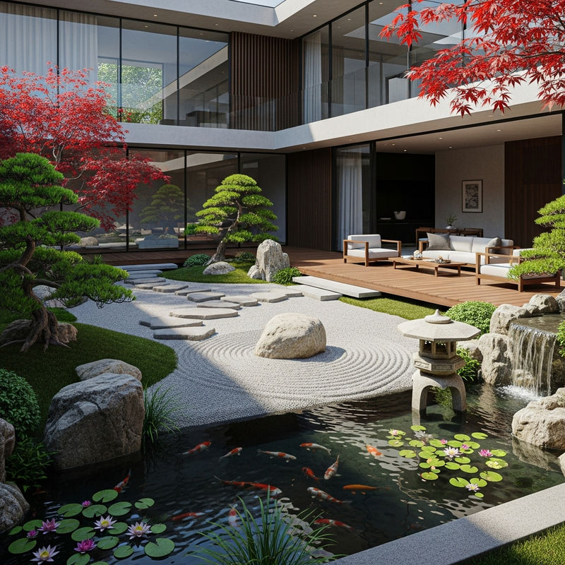 - Zen Garden (Karesansui) untuk lahan terbatas